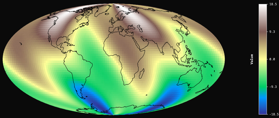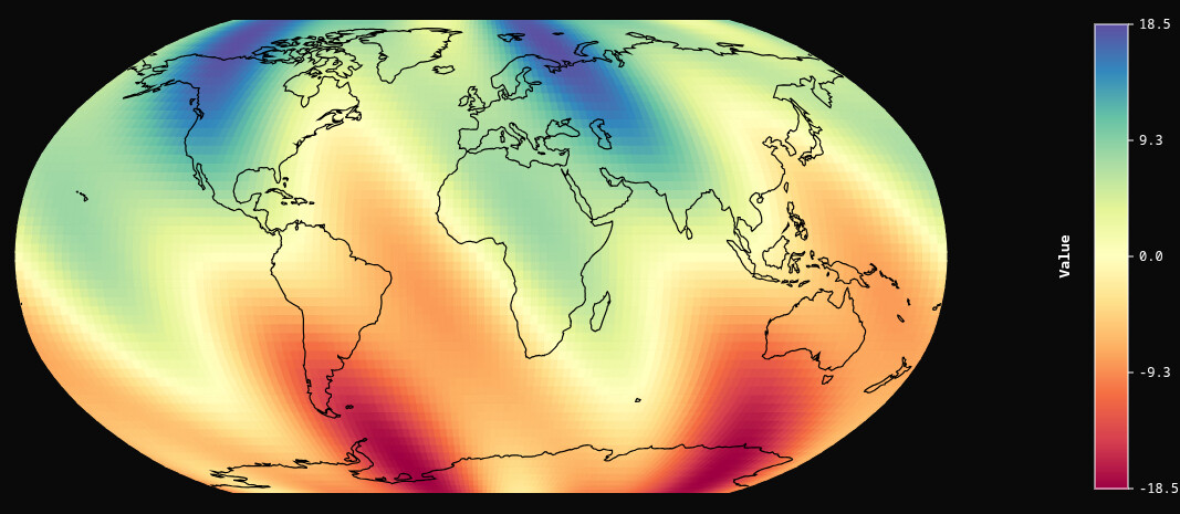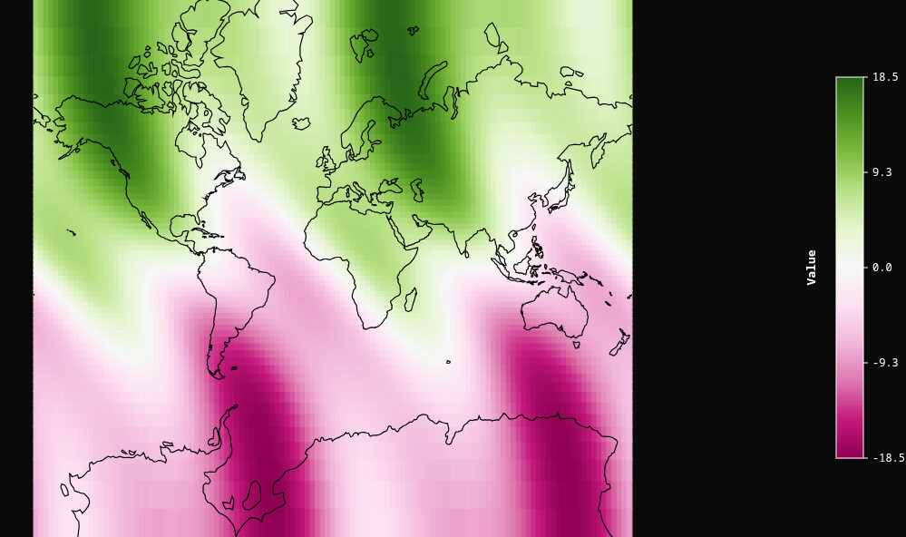 values = ( 10 * np.sin(np.radians(lats_grid)) + 6 * np.sin(2 * np.radians(lons_grid)) + 3 * np.sin(4 * np.radians(lats_grid + lons_grid)) )