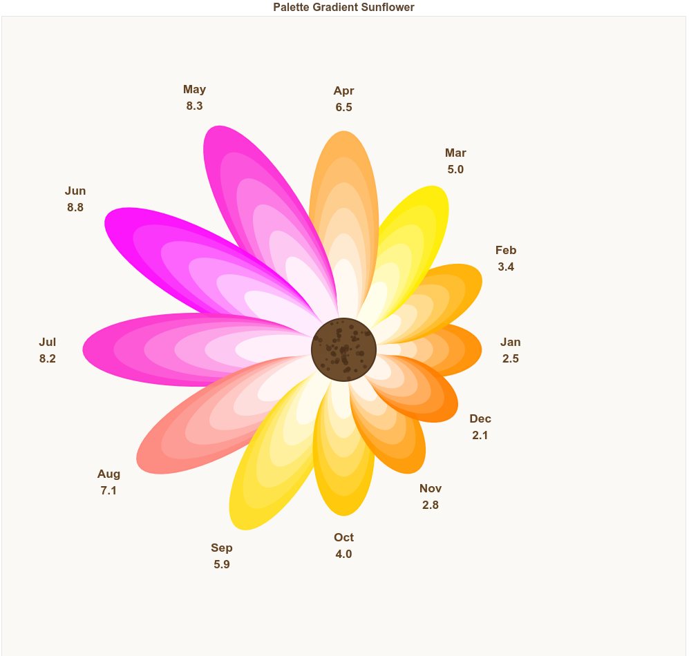 # All petals share one same layered gradient across the full palette