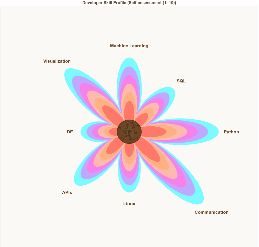 title="Developer Skill Profile (Self-assessment (1–10))",