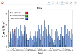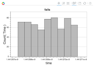I am trying to create a histogram that shows the number of failures over time. The granularity is per second and I am having no luck getting it to work. I have create a DataFrame that contains the time of the failure, as well as the schema (and other items). The DataFrame is created from a list of dictionary items, which contains schema as a string and time as a float. The dataframe looks correct when I view the contents, however everytime I try to create the histogram it fails. This is the line that creates the histogram: