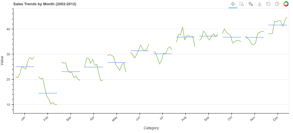 Create a cycle plot where each category has its own mini time-series.